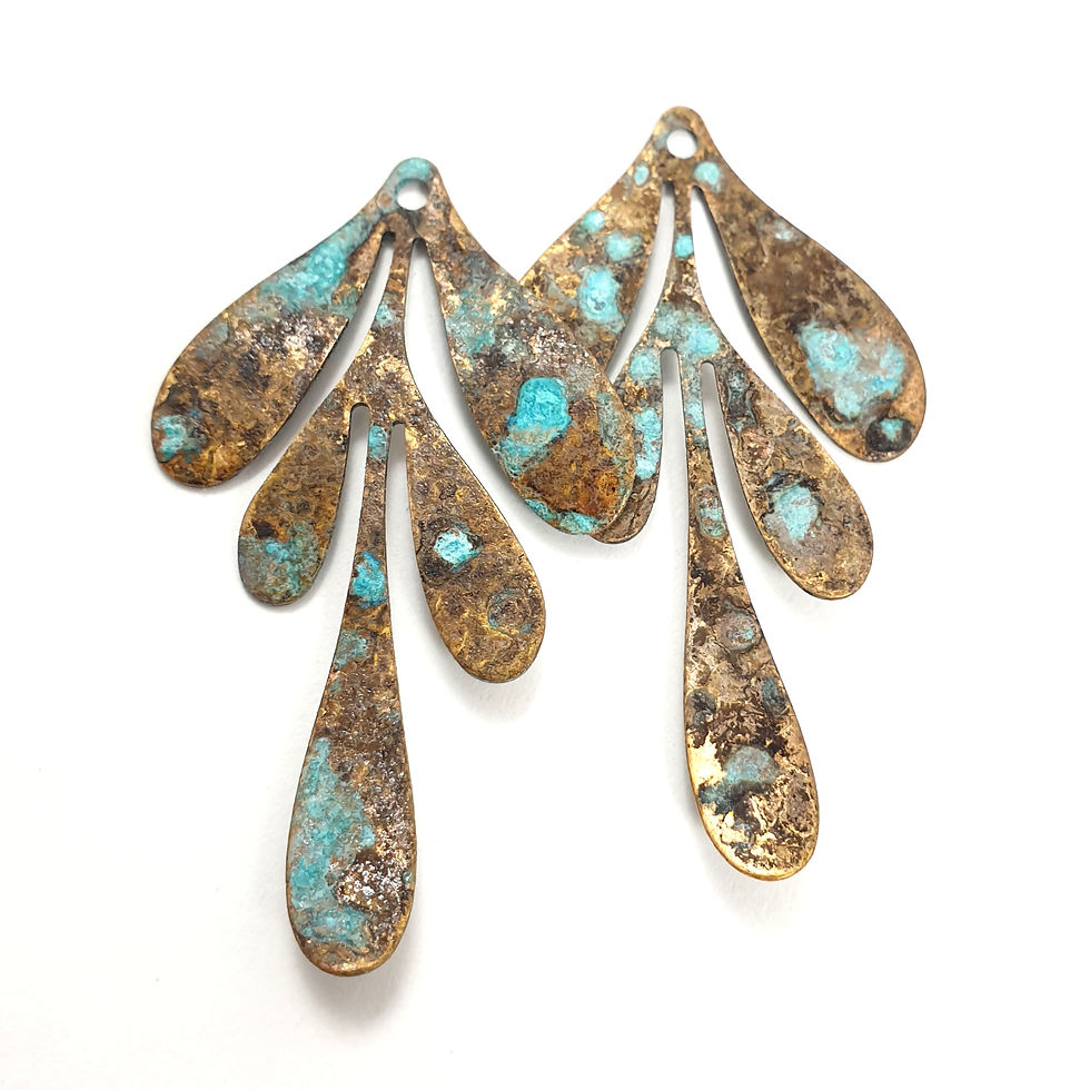 6ps Leaf earring charm 1 hole Vintage turquoise color patina 898